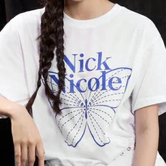 Nick Nicole Big Butterfly Sleeve Top_ White Blue