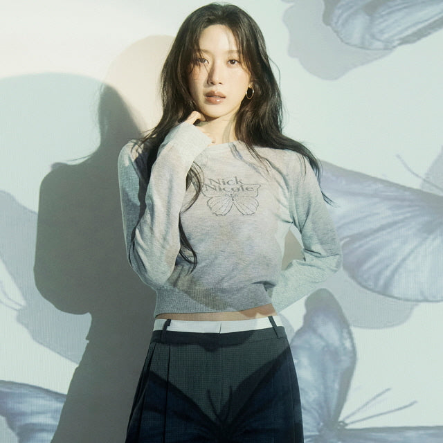 Nick Nicole Mini Butterfly Signature Sleeve Knit_Gray
