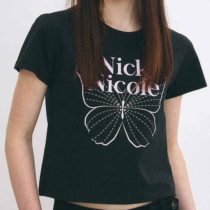 Nick Nicole Signature Butterfly Crop Top-Black